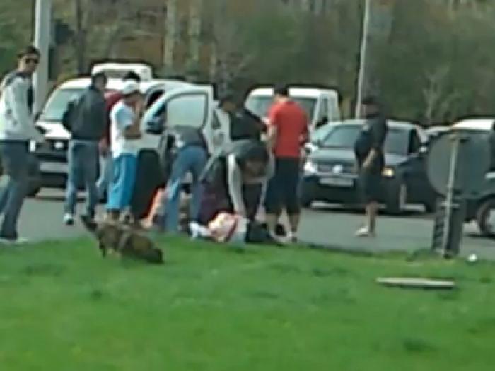 O femeie care zăcea pe asfalt după ce a fost lovită de o maşină a fost jefuită de doi romi, un bărbat şi o femeie, la Craiova, imaginile fiid postate pe YouTube.