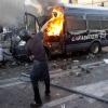 De asemenea, mai multe masini au fost incendiate in cursul protestelor. Trei persoane au fost ranite, intre care un tanar care a suferit rani la mana in timp ce incerca sa se opuna elementelor scapate de sub control, a declarat un purtator de cuvant al Prefecturii. Manifestantii pasnici, veniti in unele cazuri sa defileze in familie, cu copiii, au parasit piata istorica transformata in camp de lupta.
