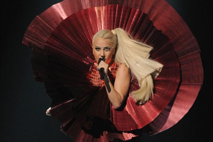 (BBC News) Lady Gaga a dominat MTV Europe Music Awards, în Belfast, primind cele patru premii într-o galǎde costume .